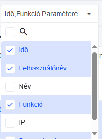 A táblázat tetején található (mobil nézetben csak a szűrő ikonnal megjeleníthető) oszlop szűrő panel segítségével kiválasztható, hogy mely oszlopok jelenjenek meg, ill. legyenek elrejtve. A kötelezően megjelenítendő oszlopok nem jelennek meg a listában, ezek nem tüntethetők el.